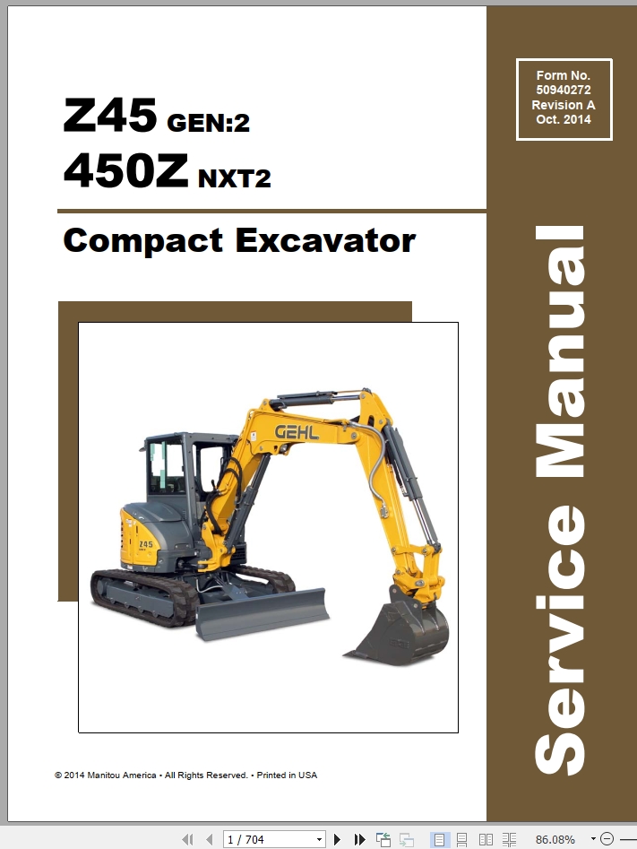 Mustang 450Z NXT2 GEHL Z45 Gen2 Service Manual 50940272A
