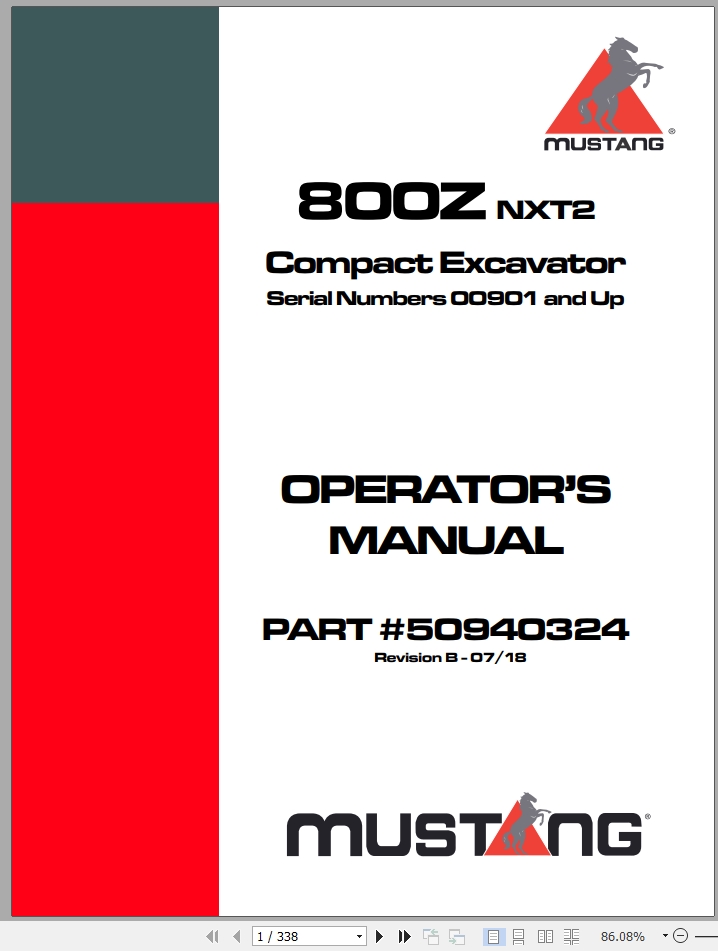 Mustang 800Z NXT2 Operator's Manual 50940324B