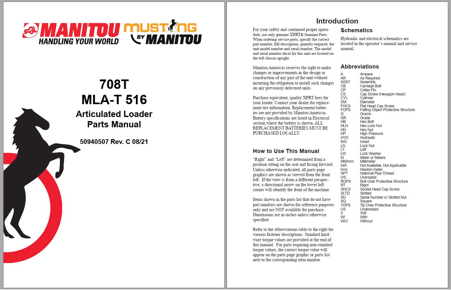 Mustang Articulated Loaders Parts Catalog 2022 PDF