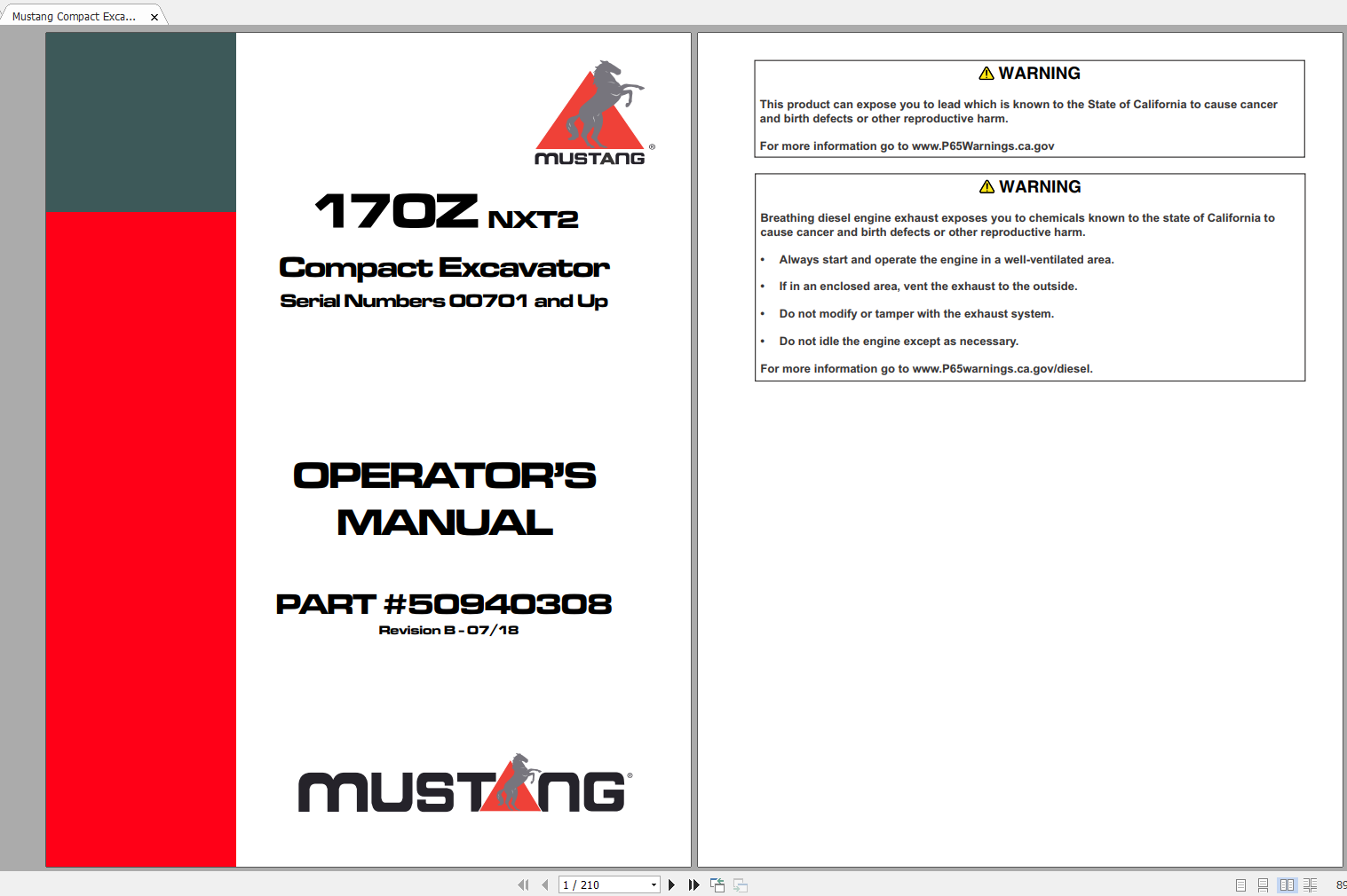 Mustang Excavators Full Models Operators Manuals Updated 2022 PDF
