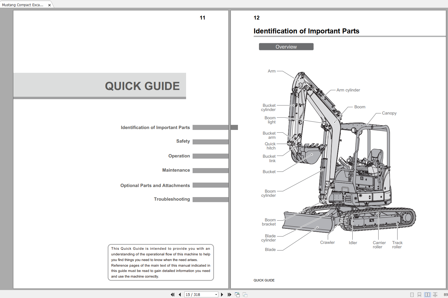 Type of Documents: Mustang Excavators Full Models Operators Manual