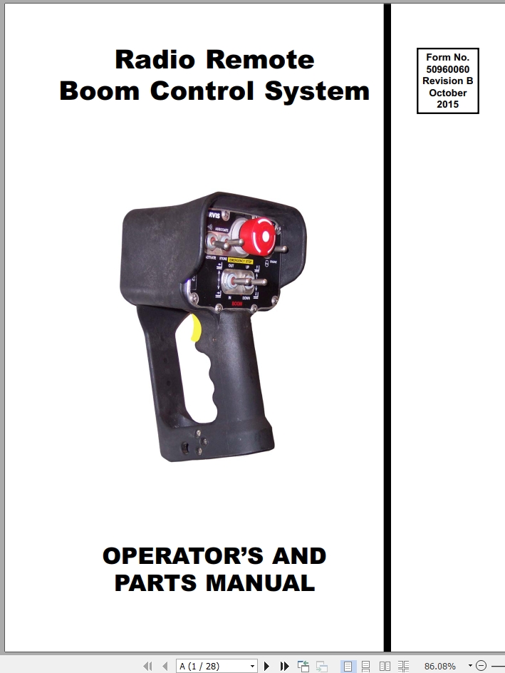 Mustang Radio Remote Boom Control System Operators and Parts Manual 50960060B