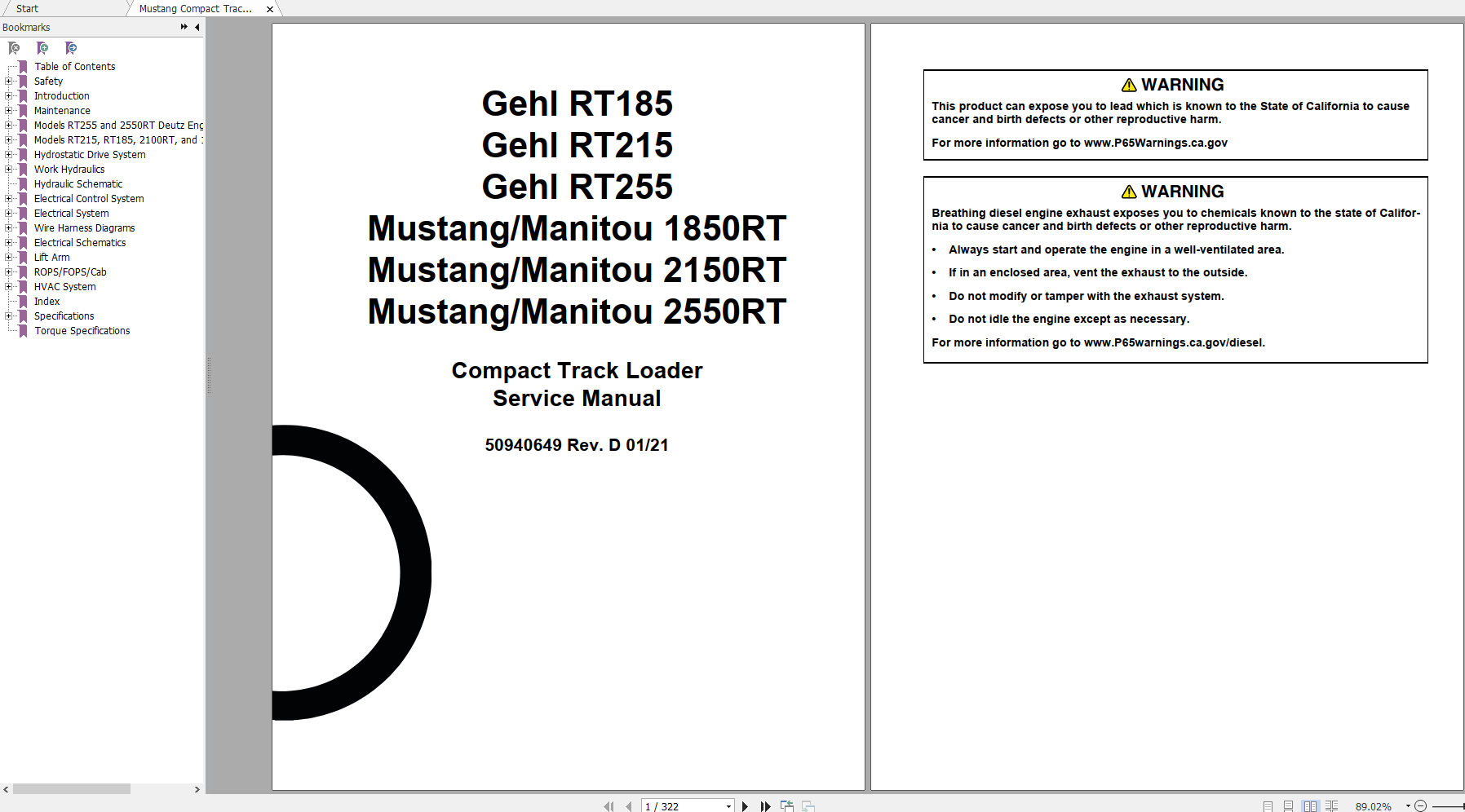 Mustang Compact Track Loader 1850RT, 2150RT, 2550RT Service Manual 50940649D 01.2021.pdf
