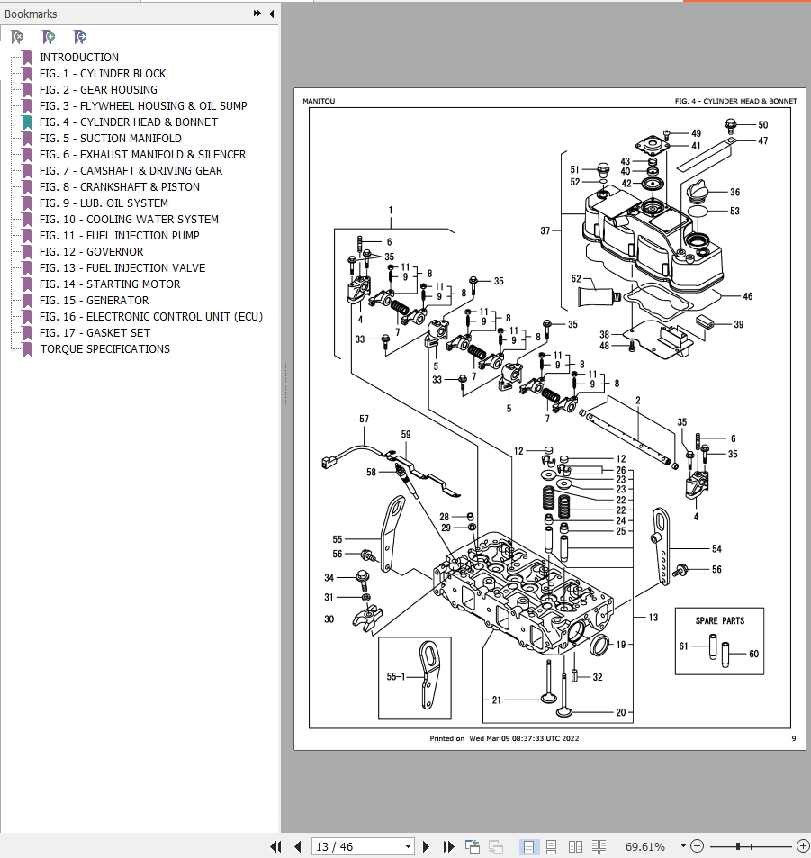 The Bookmarks of Mustang Yanmar 3TNV88F-ESBV Engine Parts Manual: