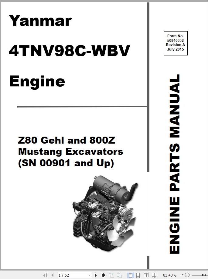 Mustang Yanmar 4TNV98C-WBV Parts Manual 50940332A