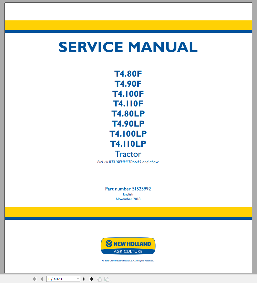New Holland T4.80F - T4.110LP Service Manual 90402748