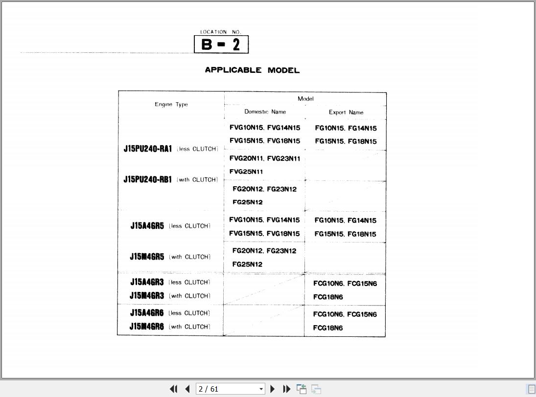 Nissan Engine J15 For TCM FVG10N15 To FCG18N6 Parts Manual MFE-J15PU240D
