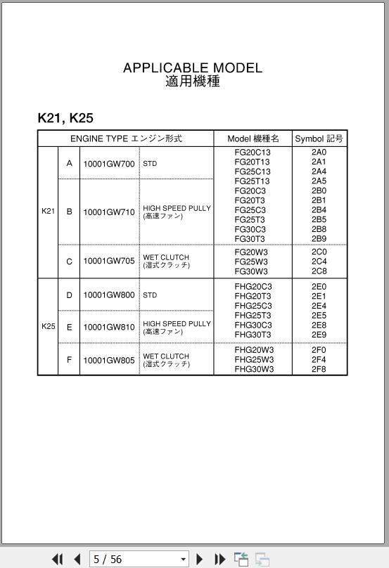 The Bookmark of Nissan Engine K21 K25 Parts Catalog: