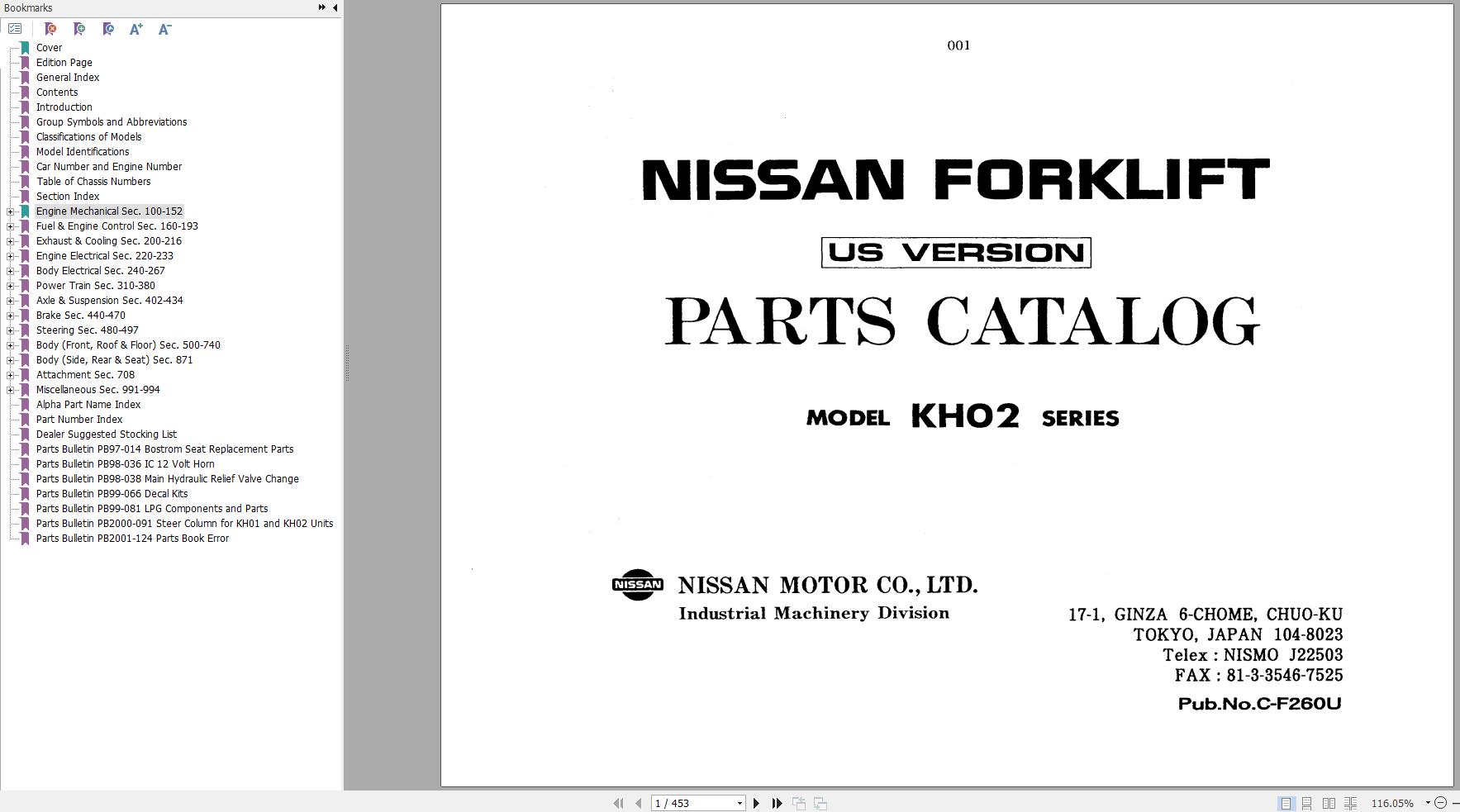 Nissan KH02 Series Parts Manual CF260-UBOOK