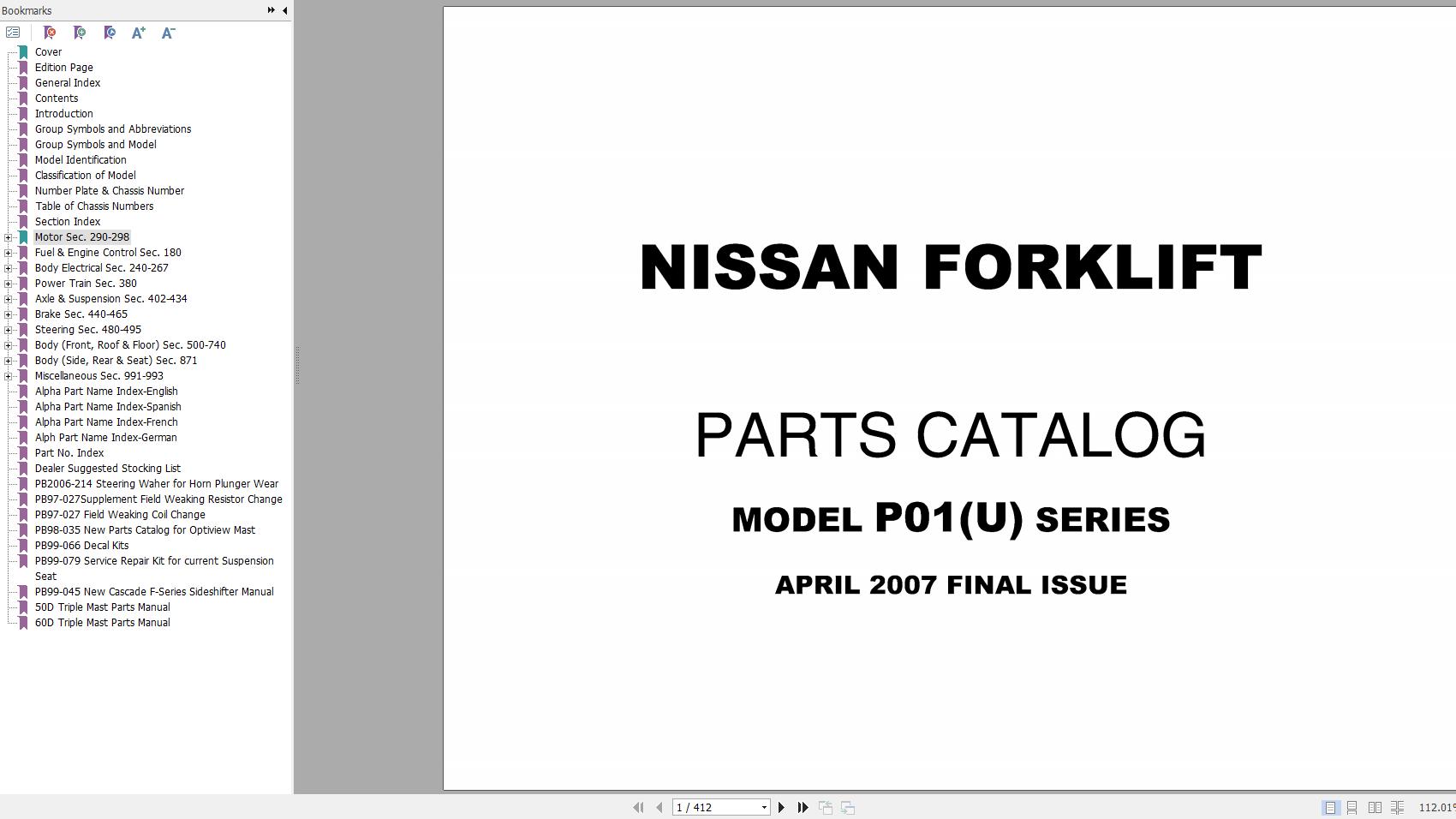 Nissan P01(U) Series Parts Manual CF350-UBOOK