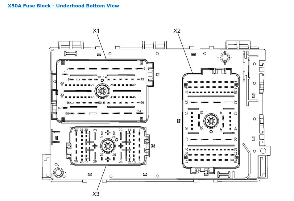 Opel Ampera 2015 Wiring Diagrams and Component Locator - EWD - Power and Signal Distribution - Wiring Systems and Power Management - Power Distribution Schematics - X50A Fuse Block - Underhood Bussing.cgm