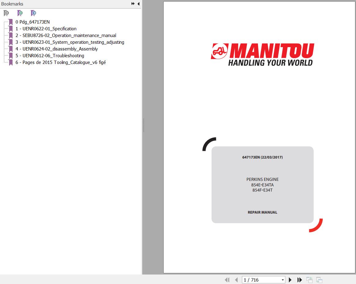 Perkins 854E E34TA 854F E34T Engine Repair Manual 647173