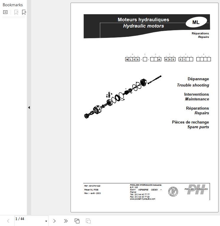 Poclain ML06 Hydraulic Motors Service Manual 917120
