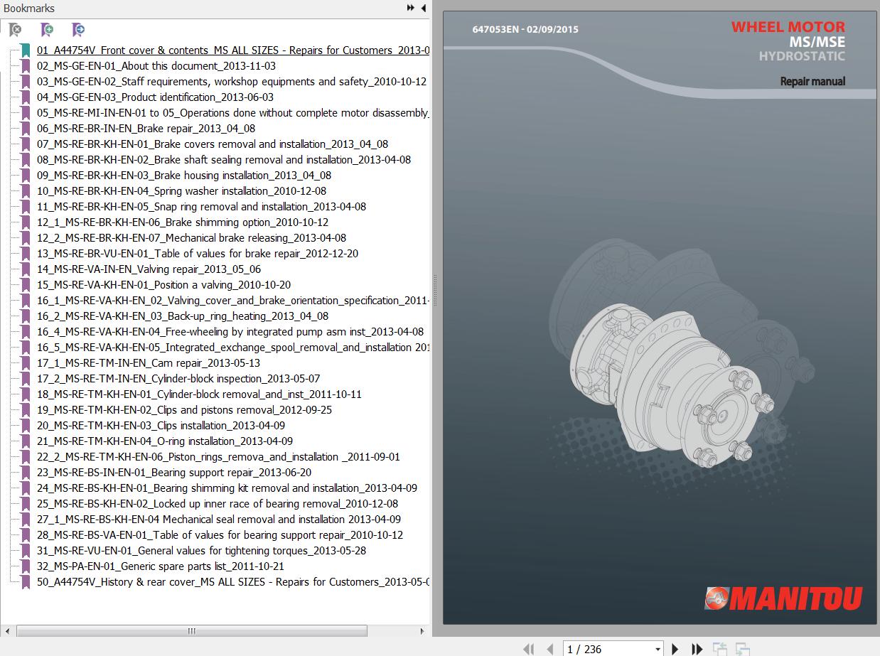 The Bookmarks Of Poclain MS MSE Wheel Motor Hydrostatic Repair Manual: