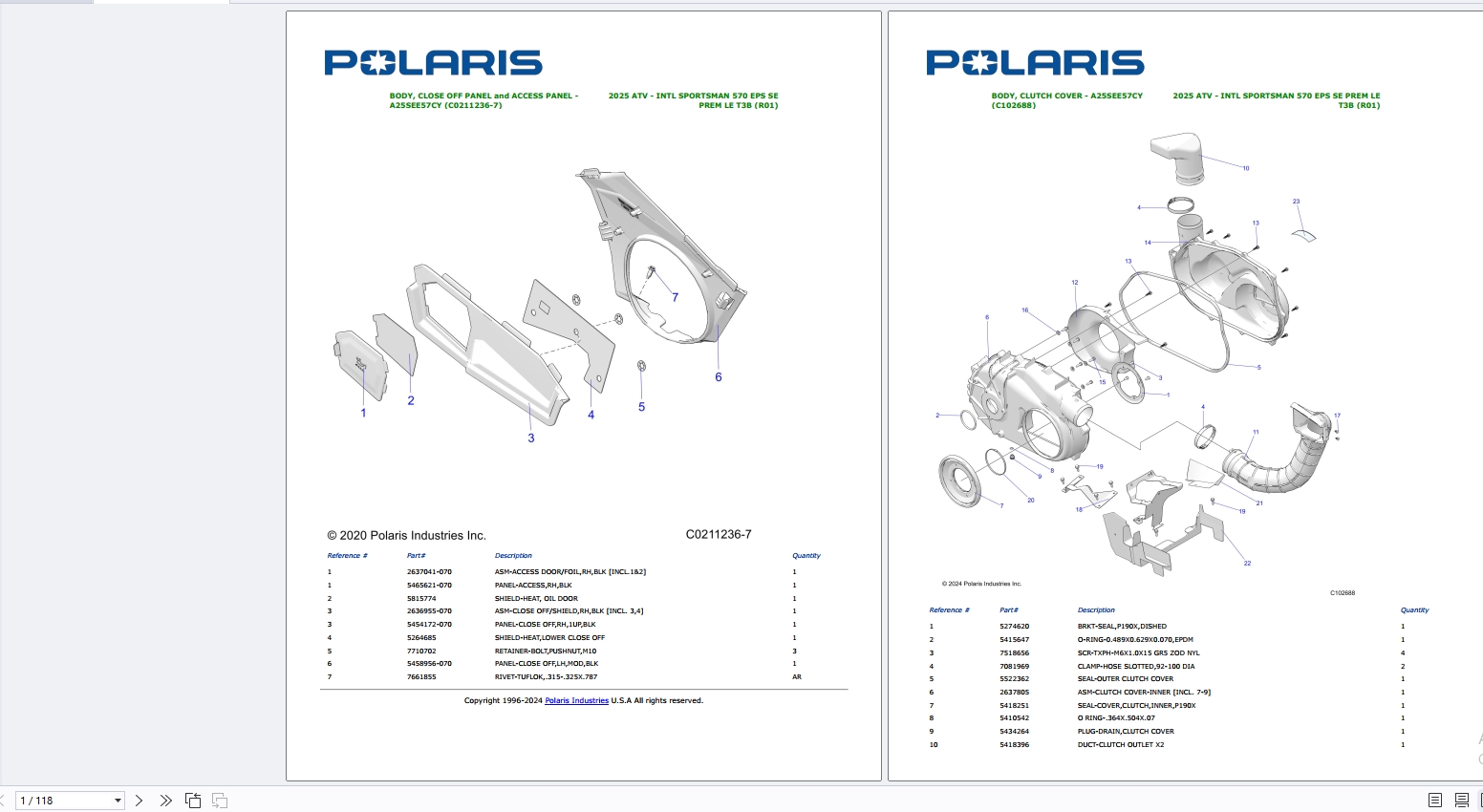 The Bookmarks of Polaris 2025 ATV INTL SPORTSMAN 570 EPS SE PREM LE T3B (R01) Part Manual: