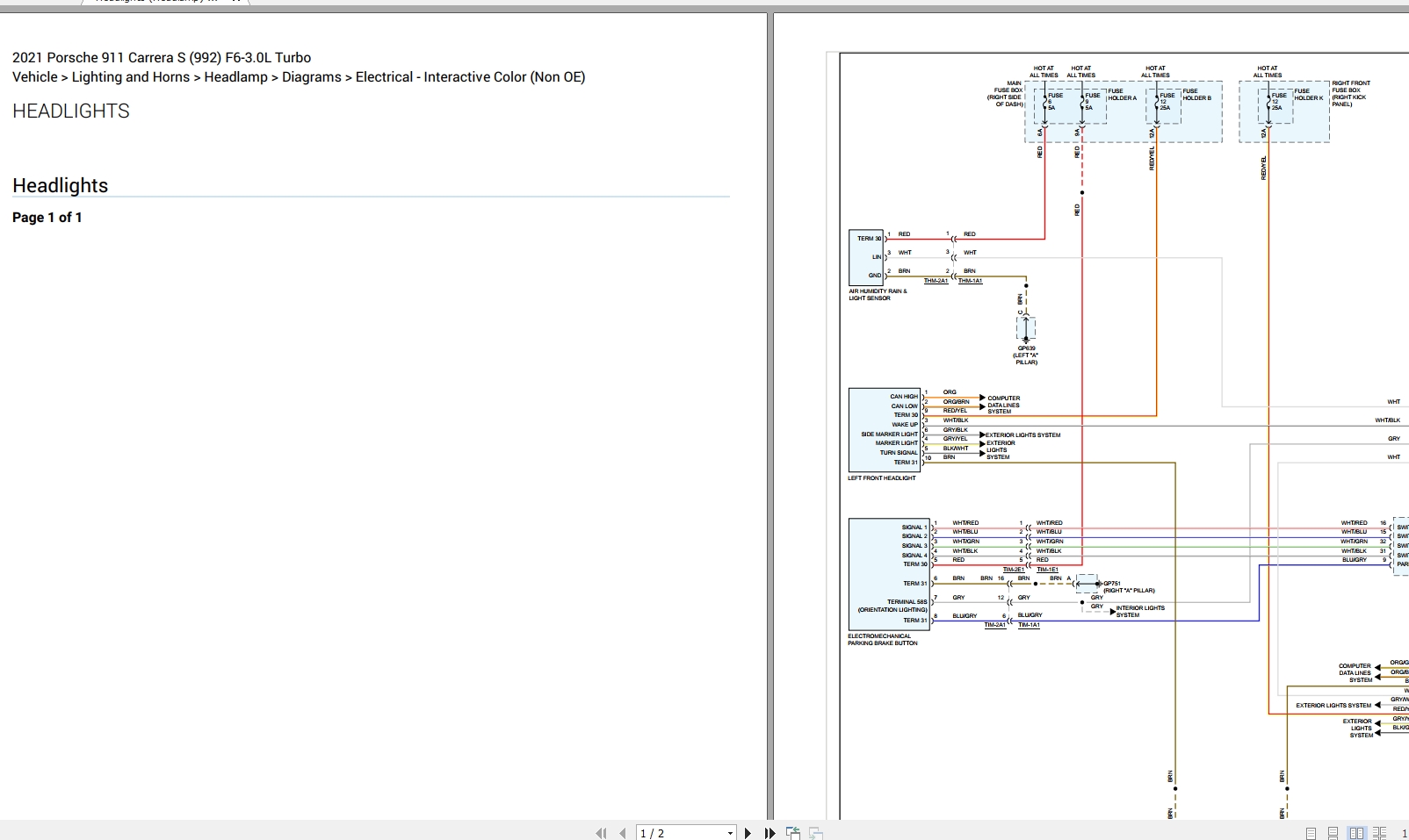 Porsche 911 Carrera S Turbo 2021 Wiring Diagram