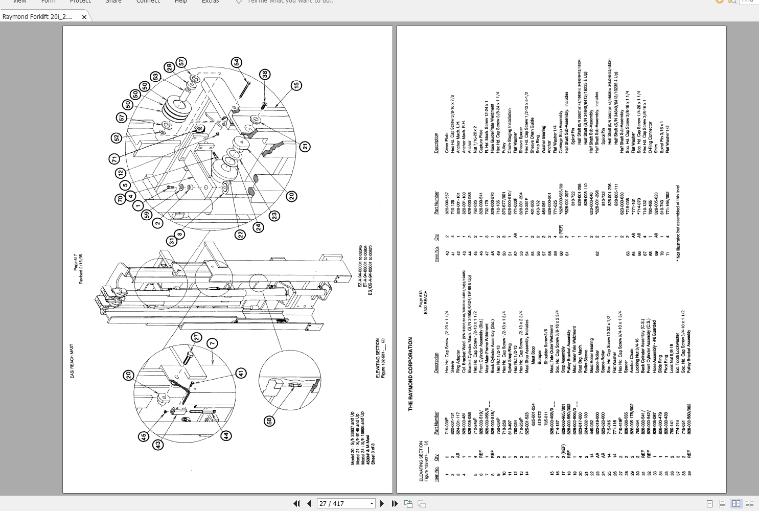 Raymond 20i 21i 31i 16806-33607 & UP Parts Manual PDPM-0012