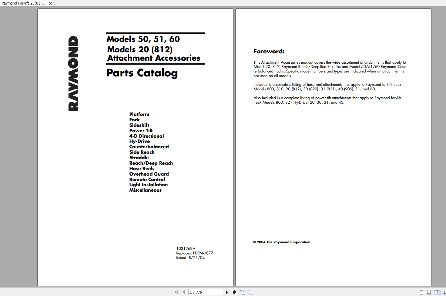 Raymond 21i SCR 04000 & Up Parts Manual PDPM-0088
