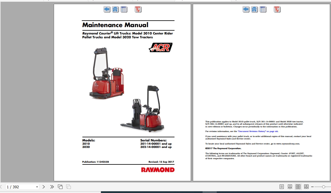 Raymond 3010 3020 Maintenance Manual 2017 1134255B