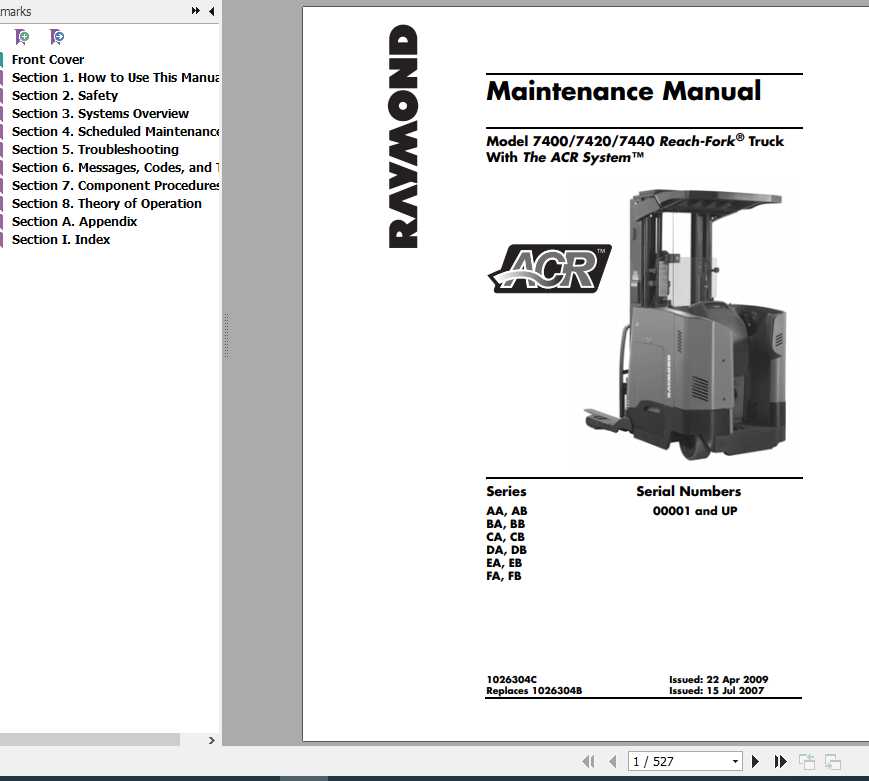 Raymond 7400 7420 7440 Part Catalog & Maintenance Manual
