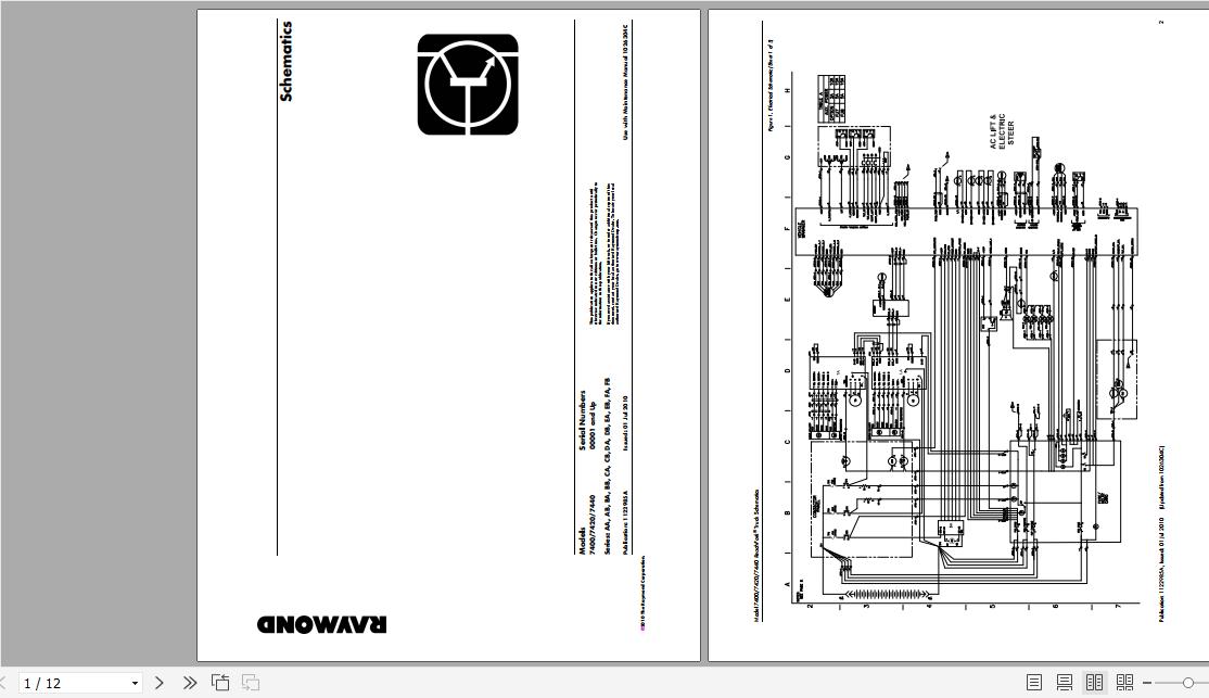 Raymond 7400 7420 7440 Electrical & Hydraulic Schematics 2010 1122985A