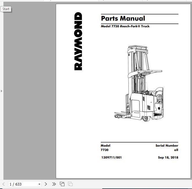 Raymond 7730 Parts Manual 2018 1309711/001