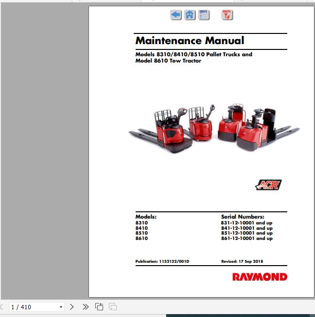 Raymond 8310 8410 8510 8610 Maintenance Manual 2018 1152122/001D