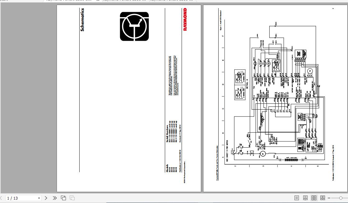 Raymond 8310 8410 8510 8610 Electrical & Hydraulic Schematics 2018 1152122/001D