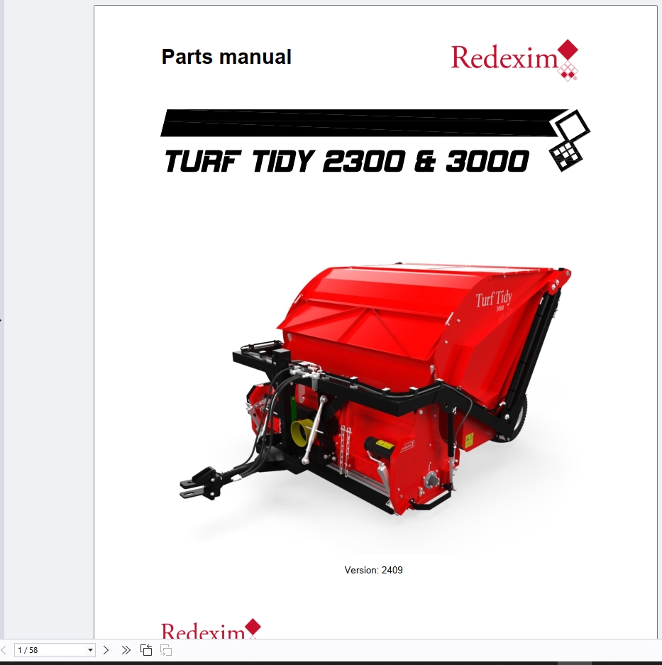 Redexim Verticutting Fraise Mowing Turf-Tidy 3000 as Sweeper Parts Manual Turf-Tidy 3000 EN PDF