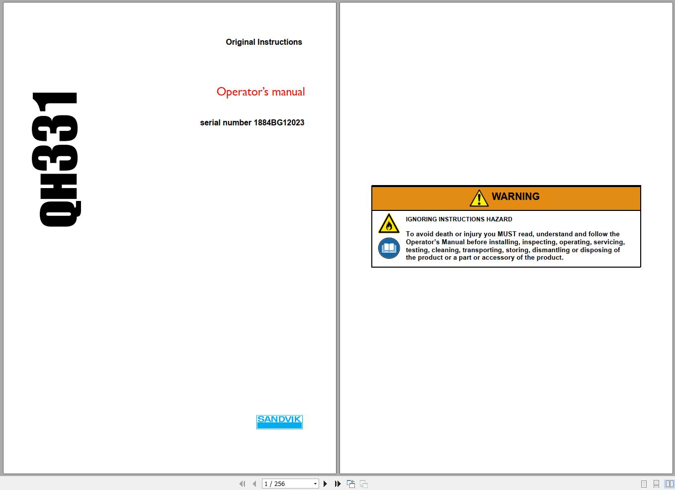 Sandvik QH331 Operation Maintenance Parts Manual and Diagram