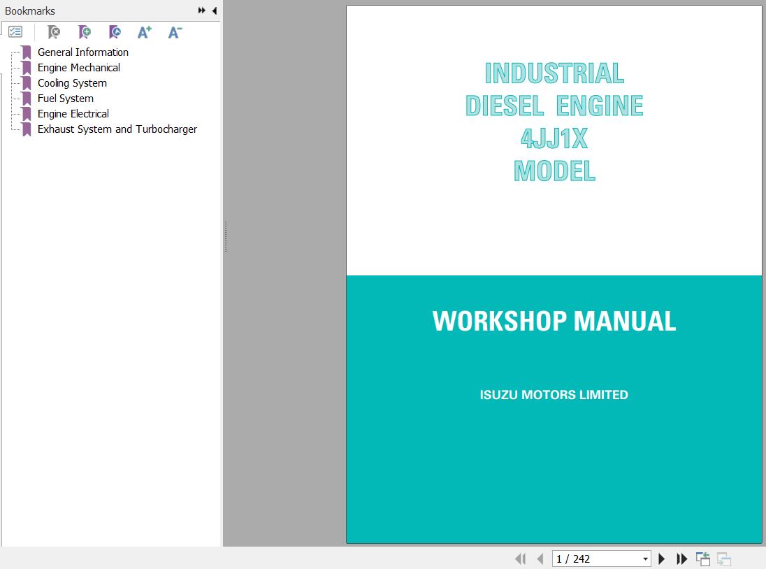 Sany 4JJ1X Isuzu Industrial Diesel Engine Workshop Manual IDE -2430