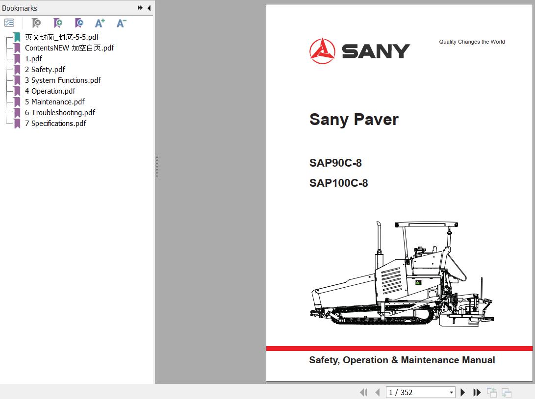 The Bookmarks of Sany SAP90C-8 SAP100C-8 Operation and Maintenance Manual: