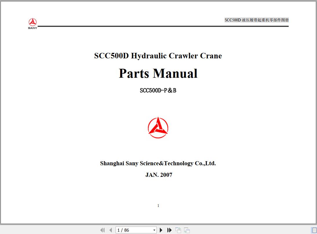 Sany SCC500D Operation Maintenance Manual and Part Manual