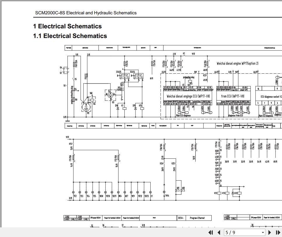 Sany SCM2000C-8S Electrical and Hydraulic Schematics