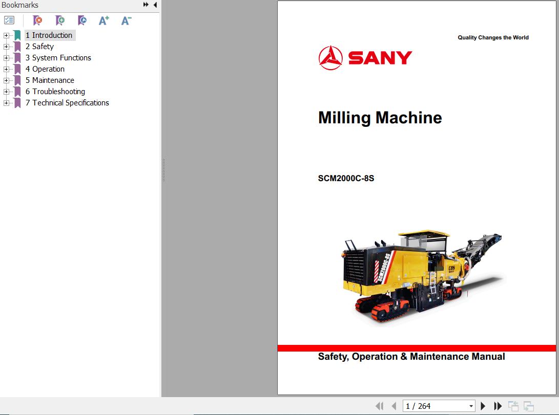 The Bookmarks of Sany SCM2000C-8S Operation and Maintenance Manual: