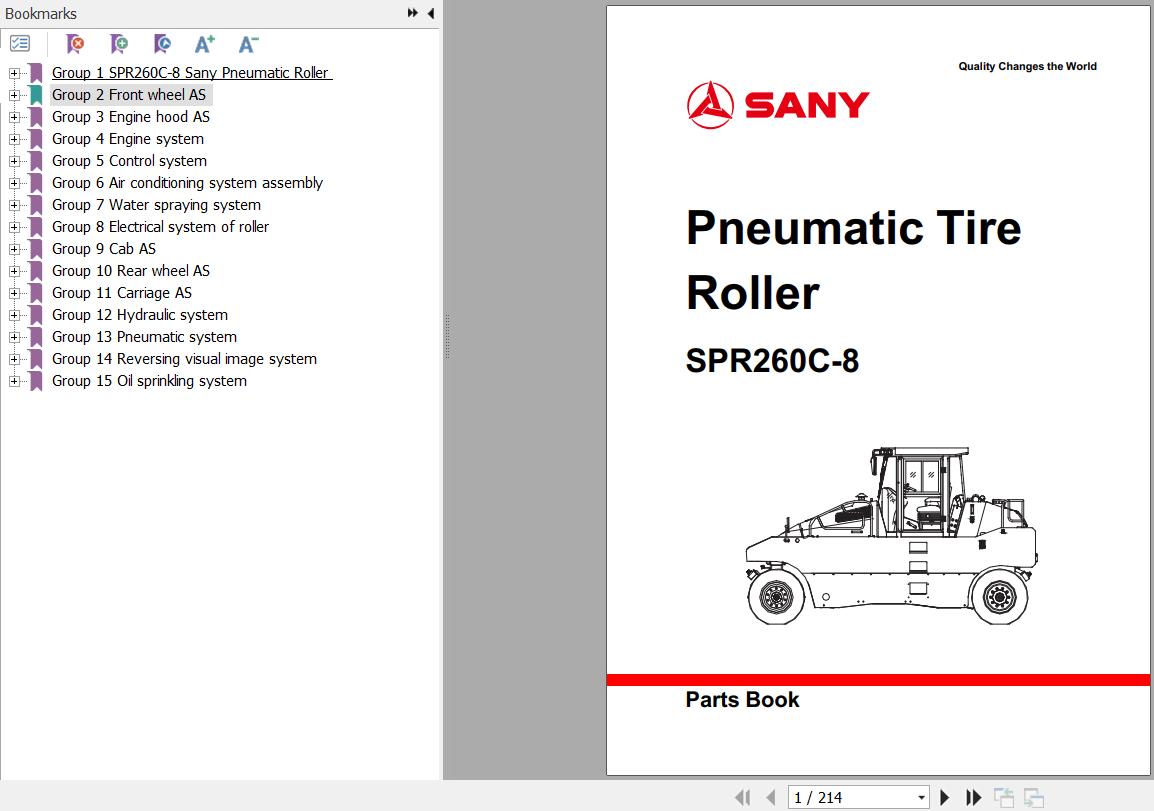 The Bookmarks of Sany SPR260C-8 Parts Book YZ3826CA0338: