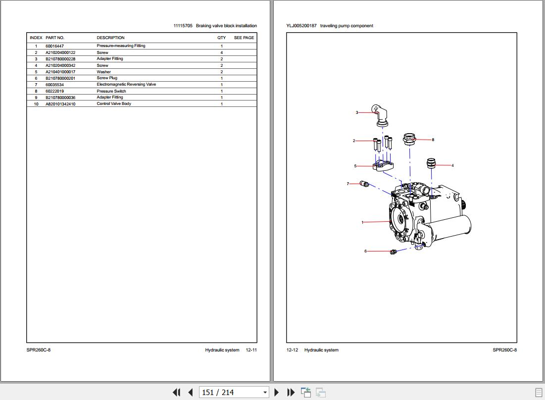 Sany SPR260C-8 Parts Book YZ3826CA0338