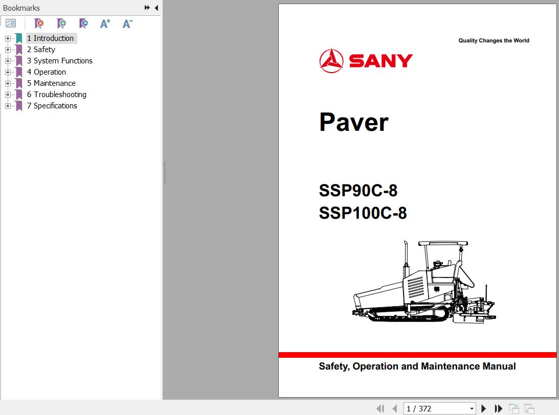 The Bookmarks of Sany SSP90C-8 SSP100C-8 Operation and Maintenance Manual: