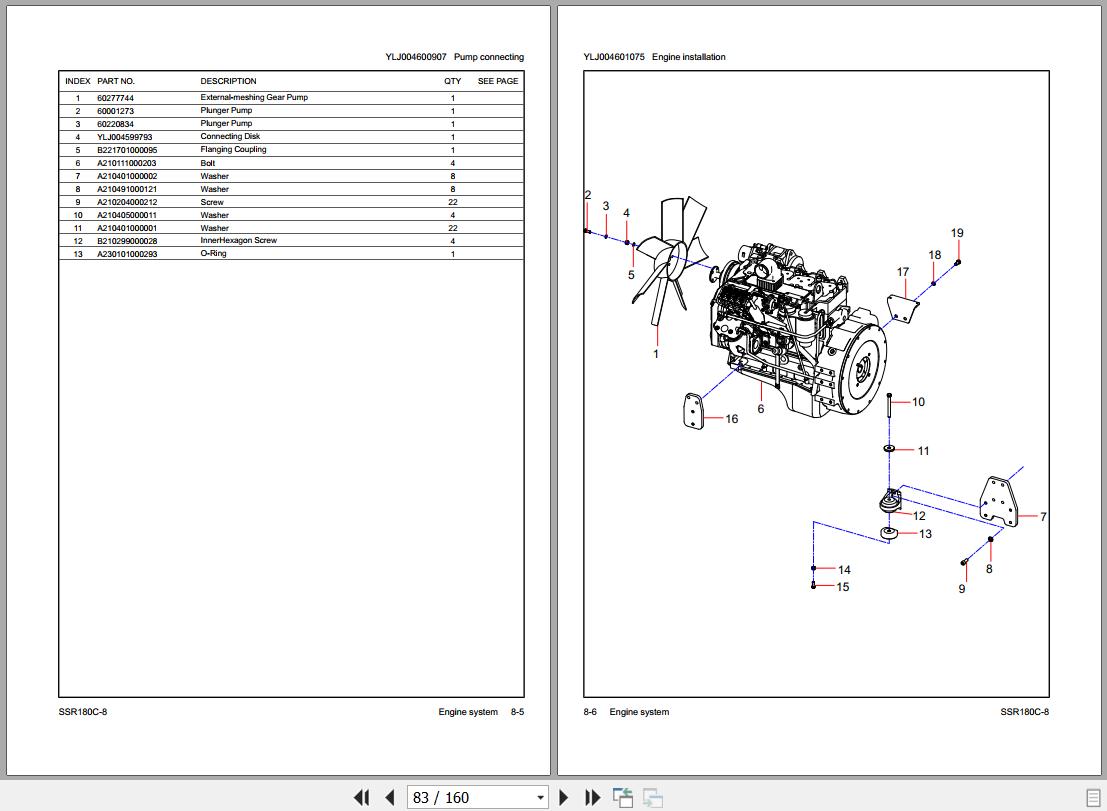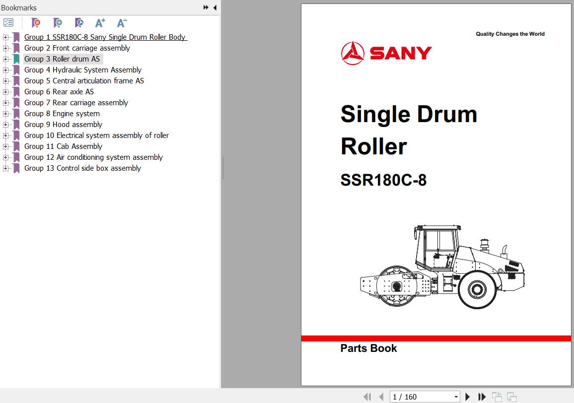 Sany SSR180C-8 Parts Book YZ1818CA0709