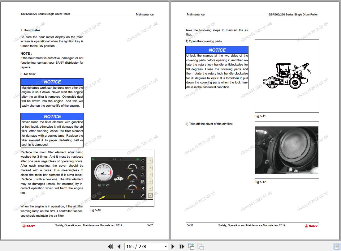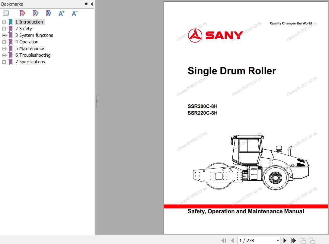 The Bookmarks of Sany SSR200C-8H SSR220C-8H Operation and Maintenance Manual: