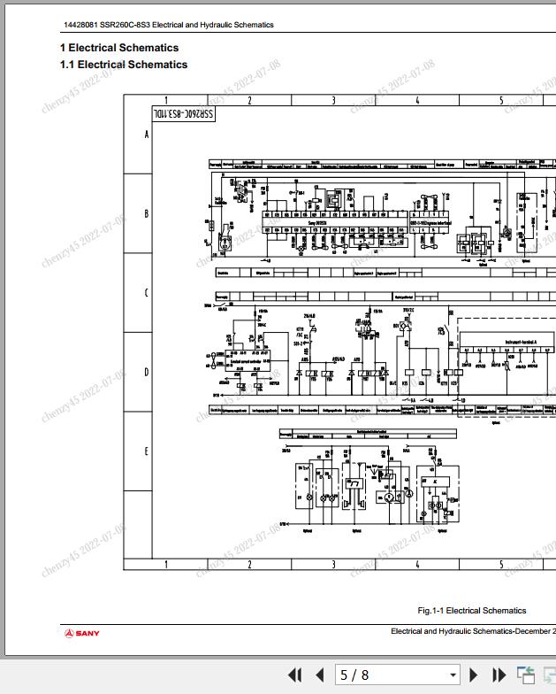Sany SSR260C-8 Electrical and Hydraulic Schematics 8 Pages