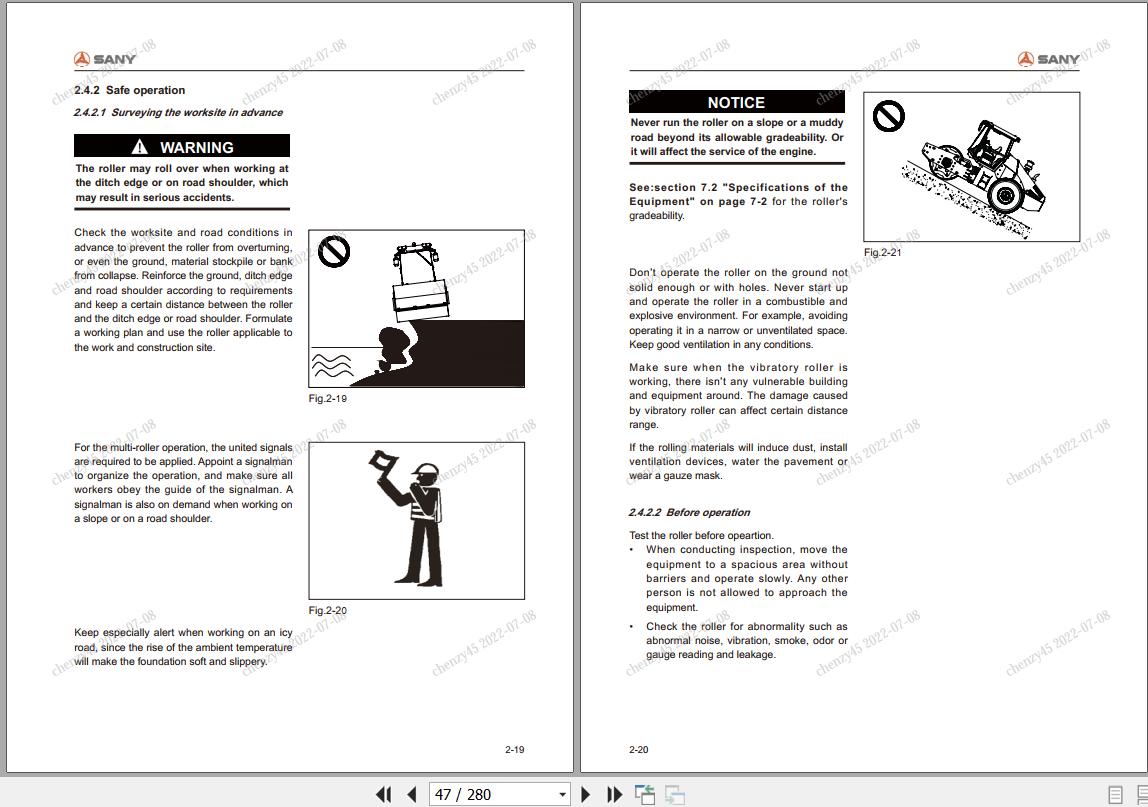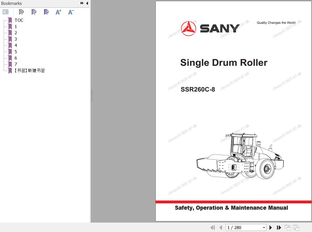 The Bookmarks of Sany SSR260C-8 Operation and Maintenance Manual: