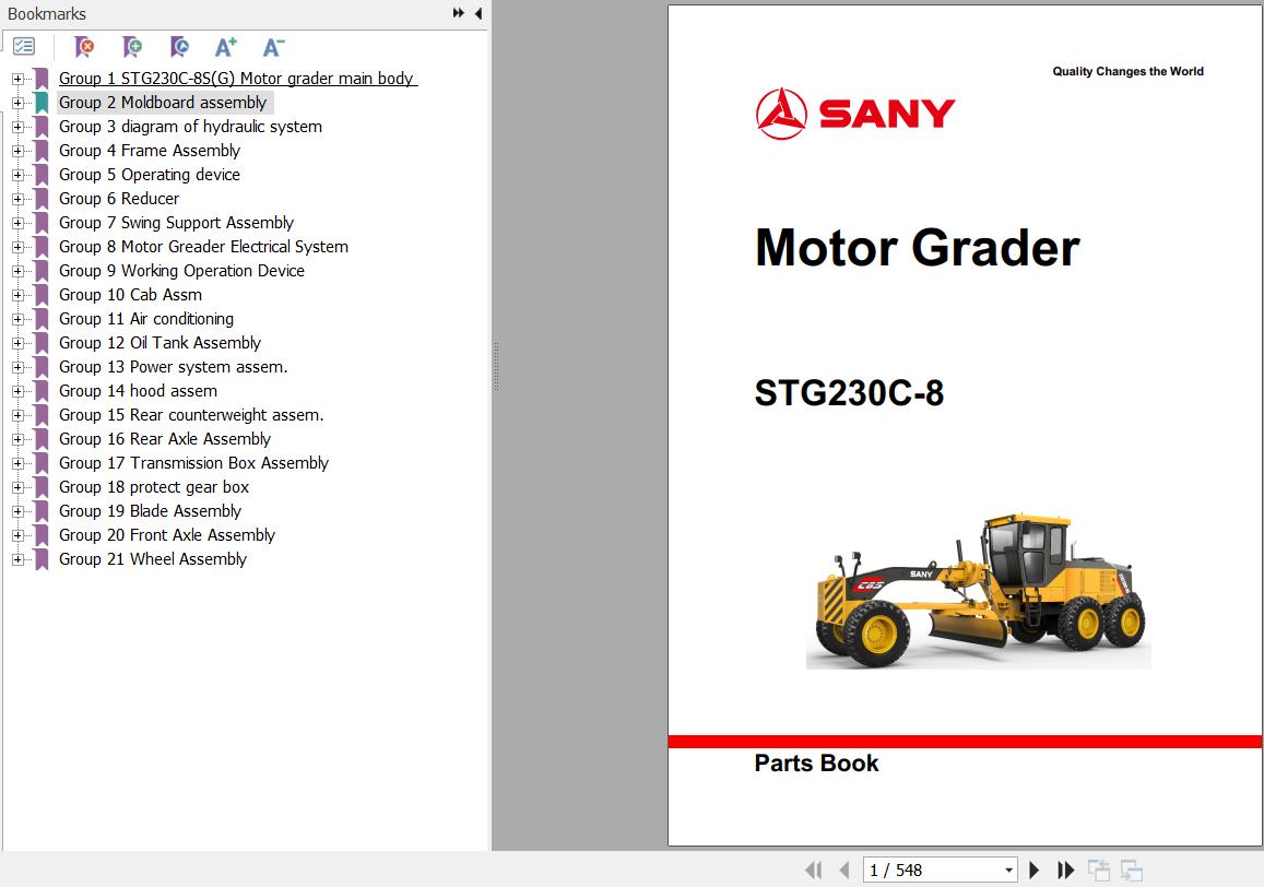 The Bookmarks of Sany STG230C-8 Parts Book PY5823CC2072: