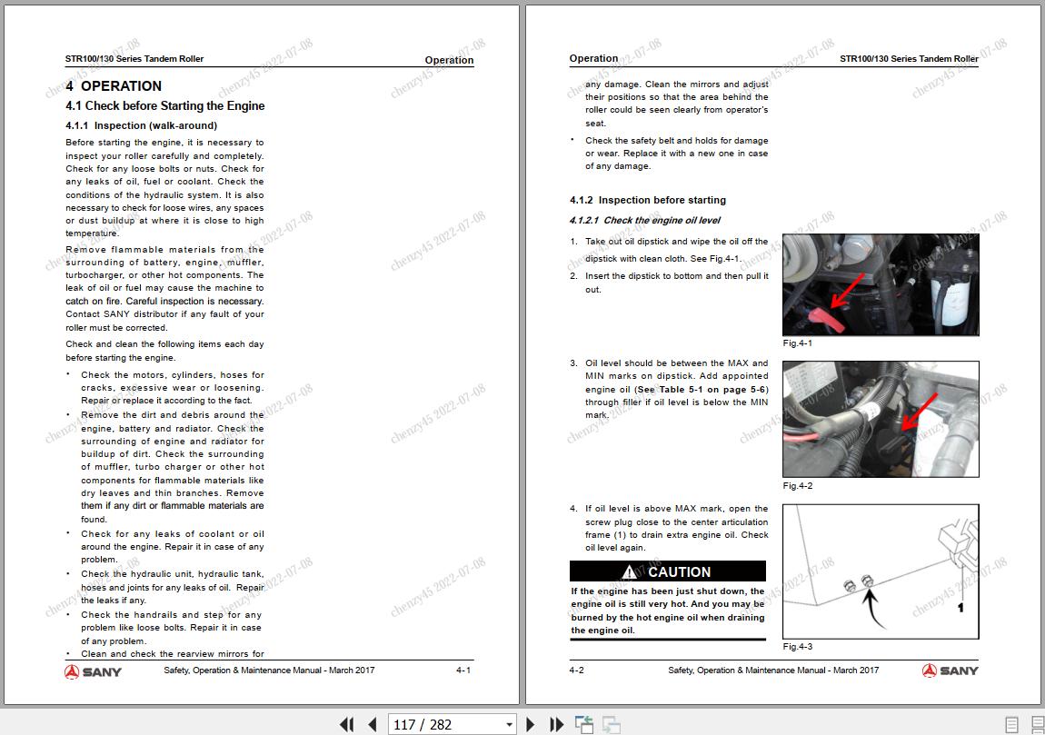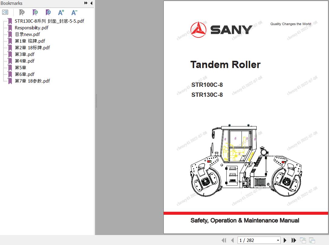 The Bookmarks of Sany STR100C-8 STR130C-8 Operation and Maintenance Manual: