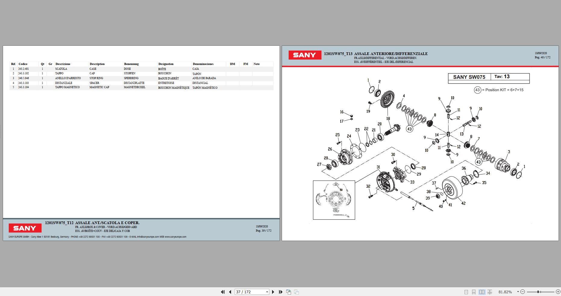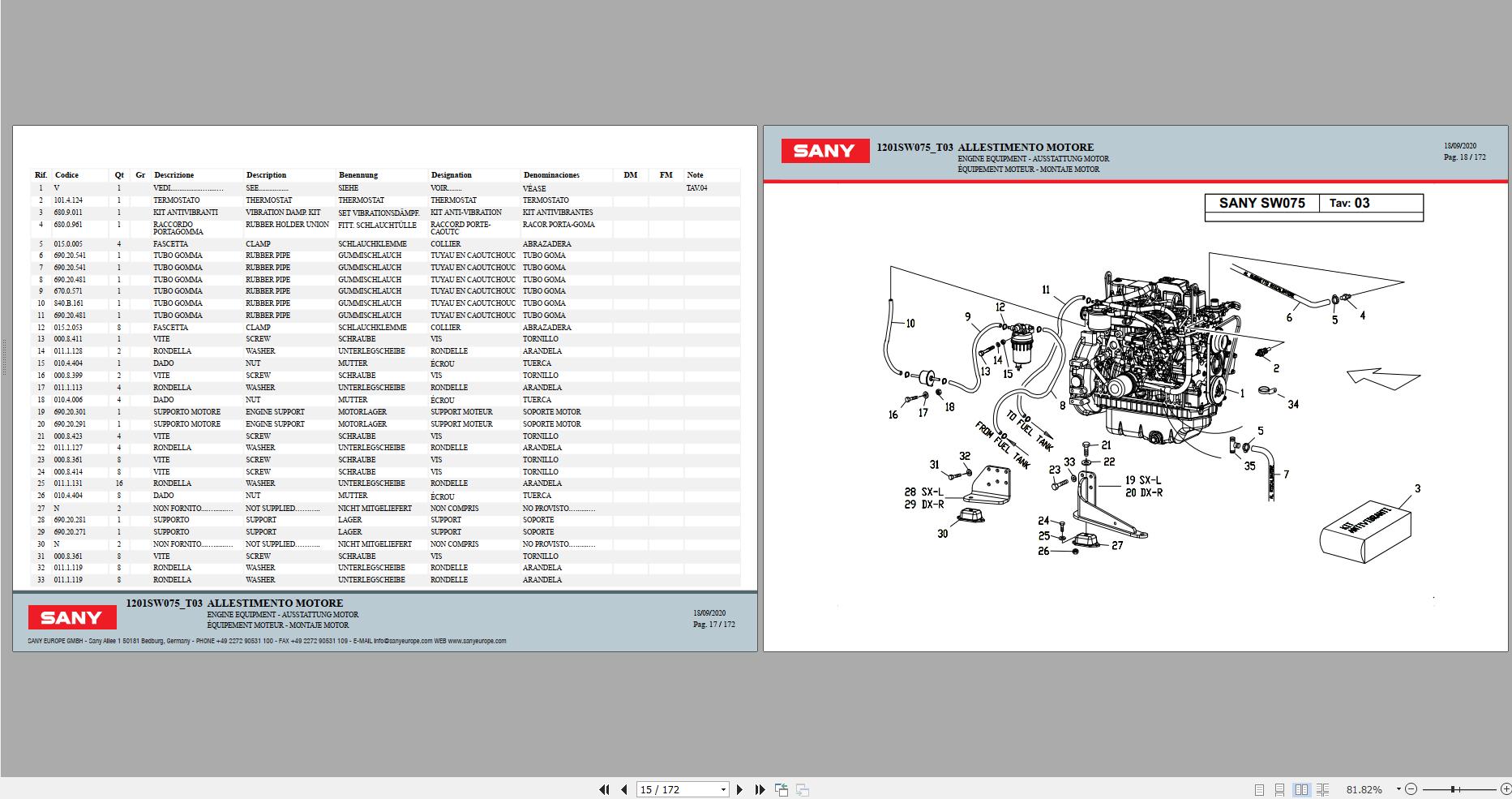 Sany SW075 Spare Parts Catalog