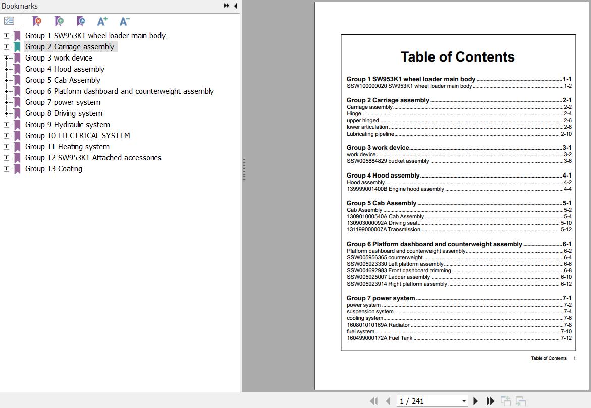 The Bookmarks of Sany SW953K1 Parts Book SSW100000020: