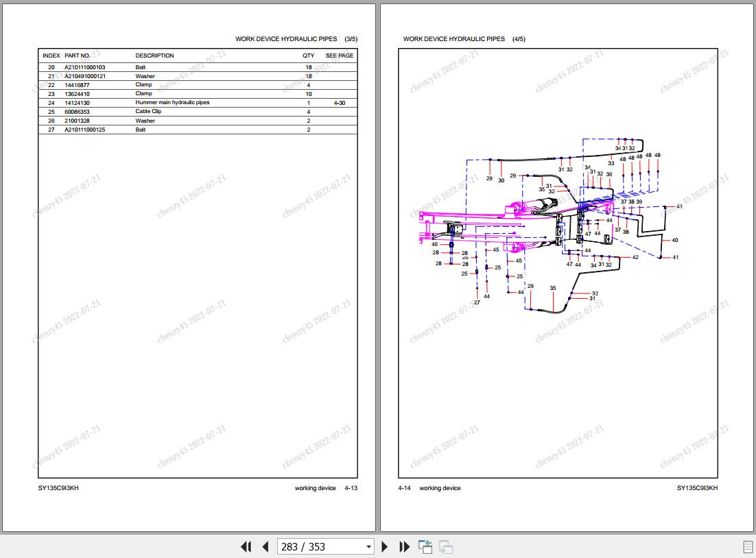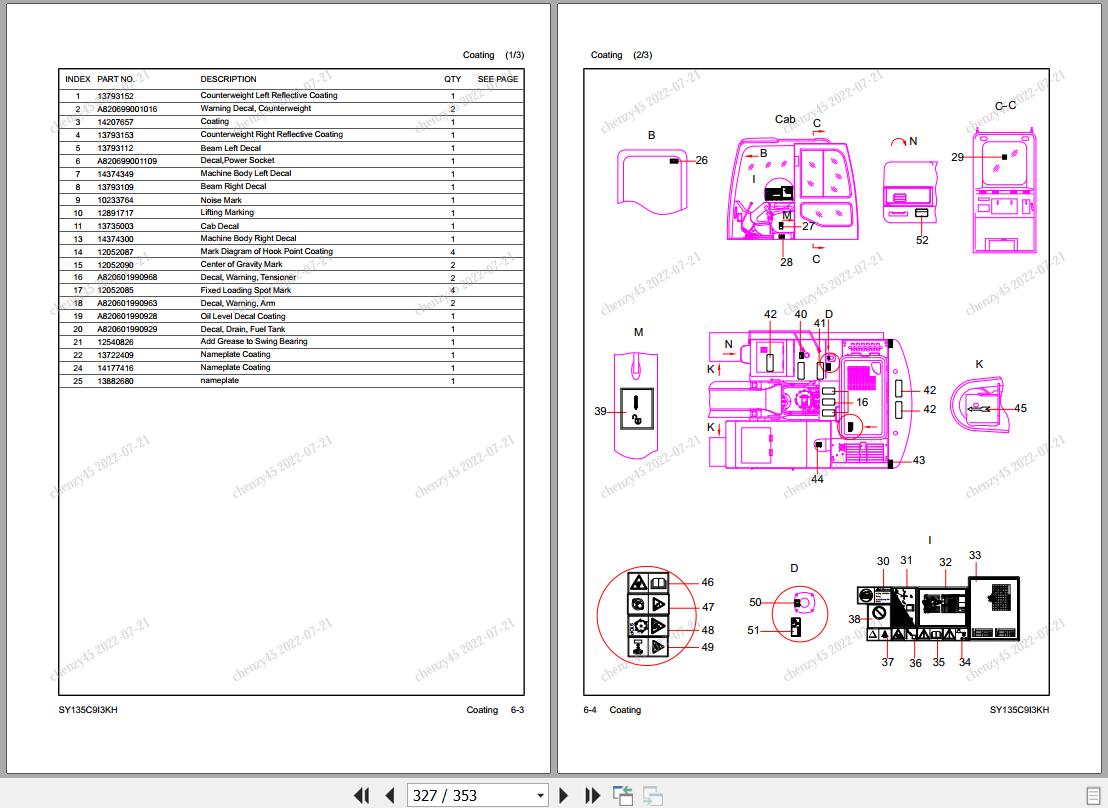 The Bookmarks of Sany SY135C9I3KH Parts Book SY013NCC07388: