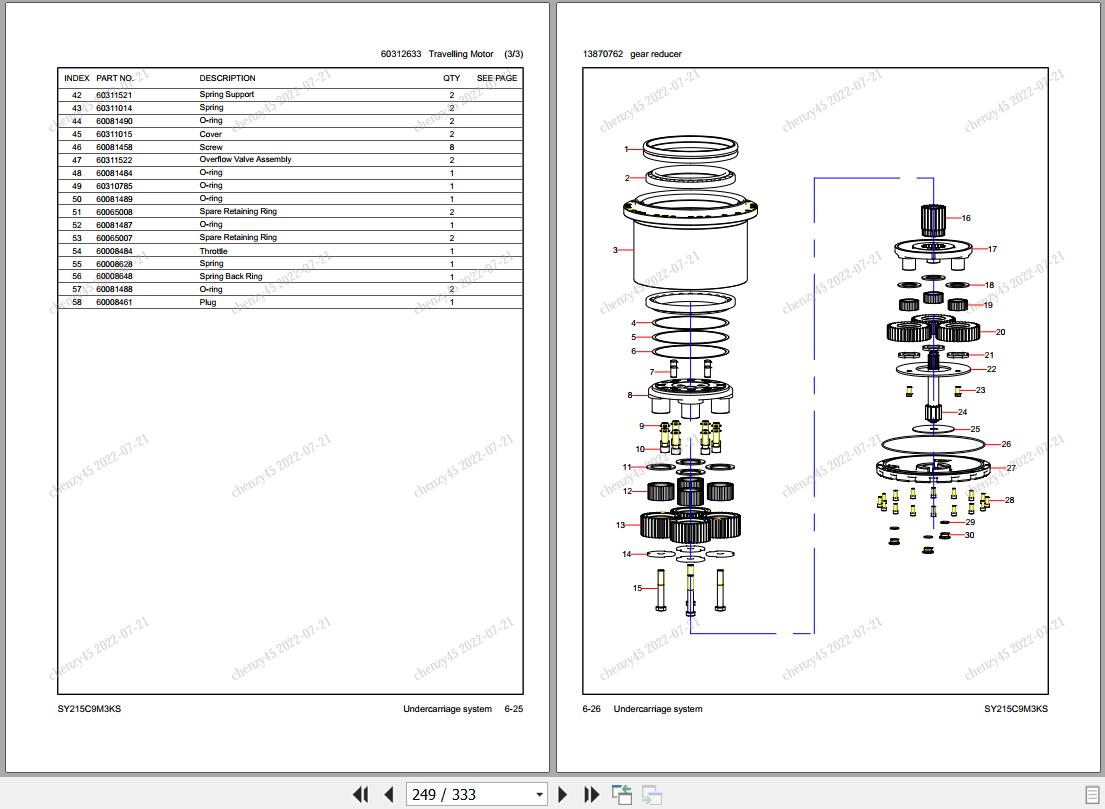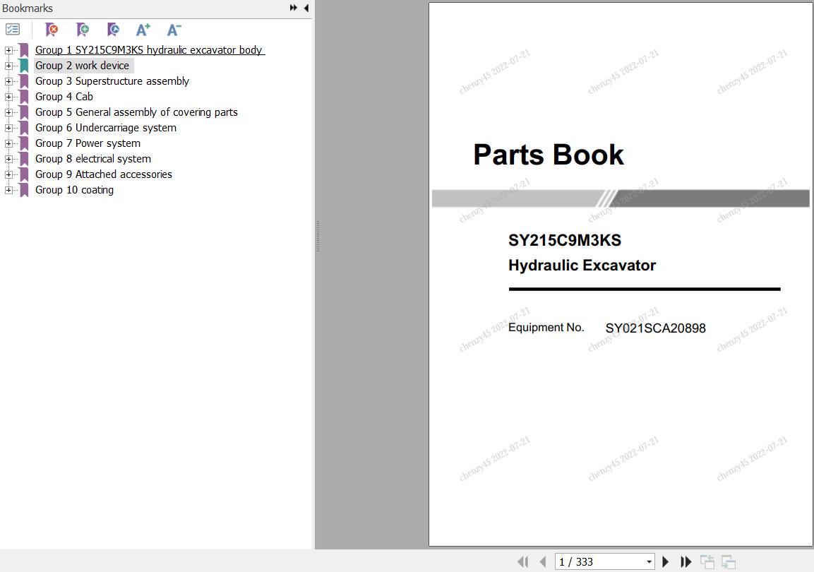 The Bookmarks of Sany SY215C9M3KS Parts Book SY021SCA20898: