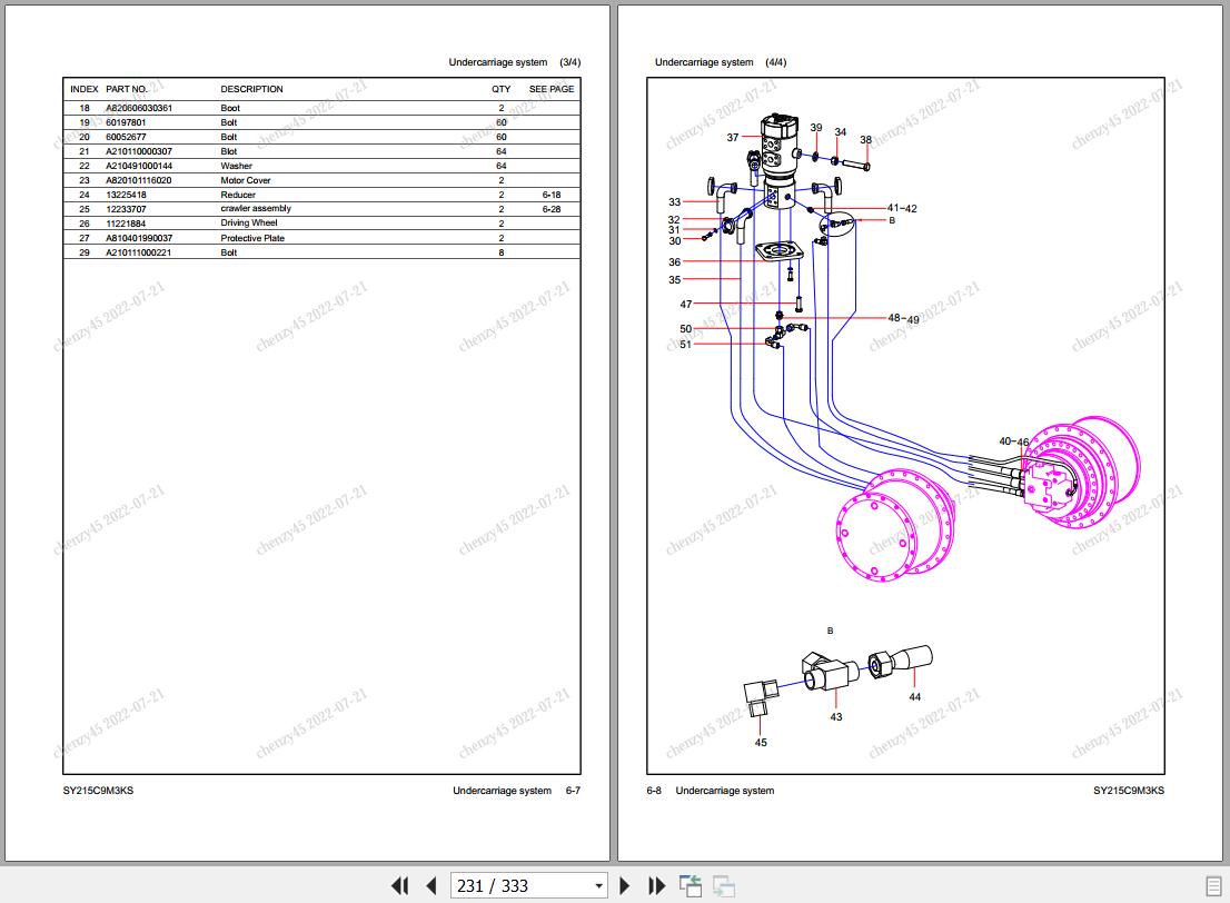 Sany SY215C9M3KS Parts Book SY021SCA20898