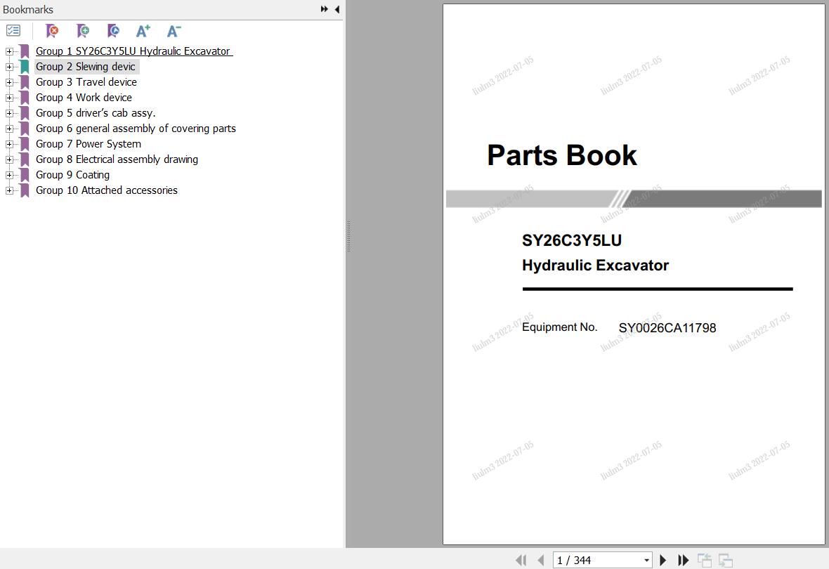 The Bookmarks of Sany SY26C3Y5LU Parts Book SY0026CA11798: